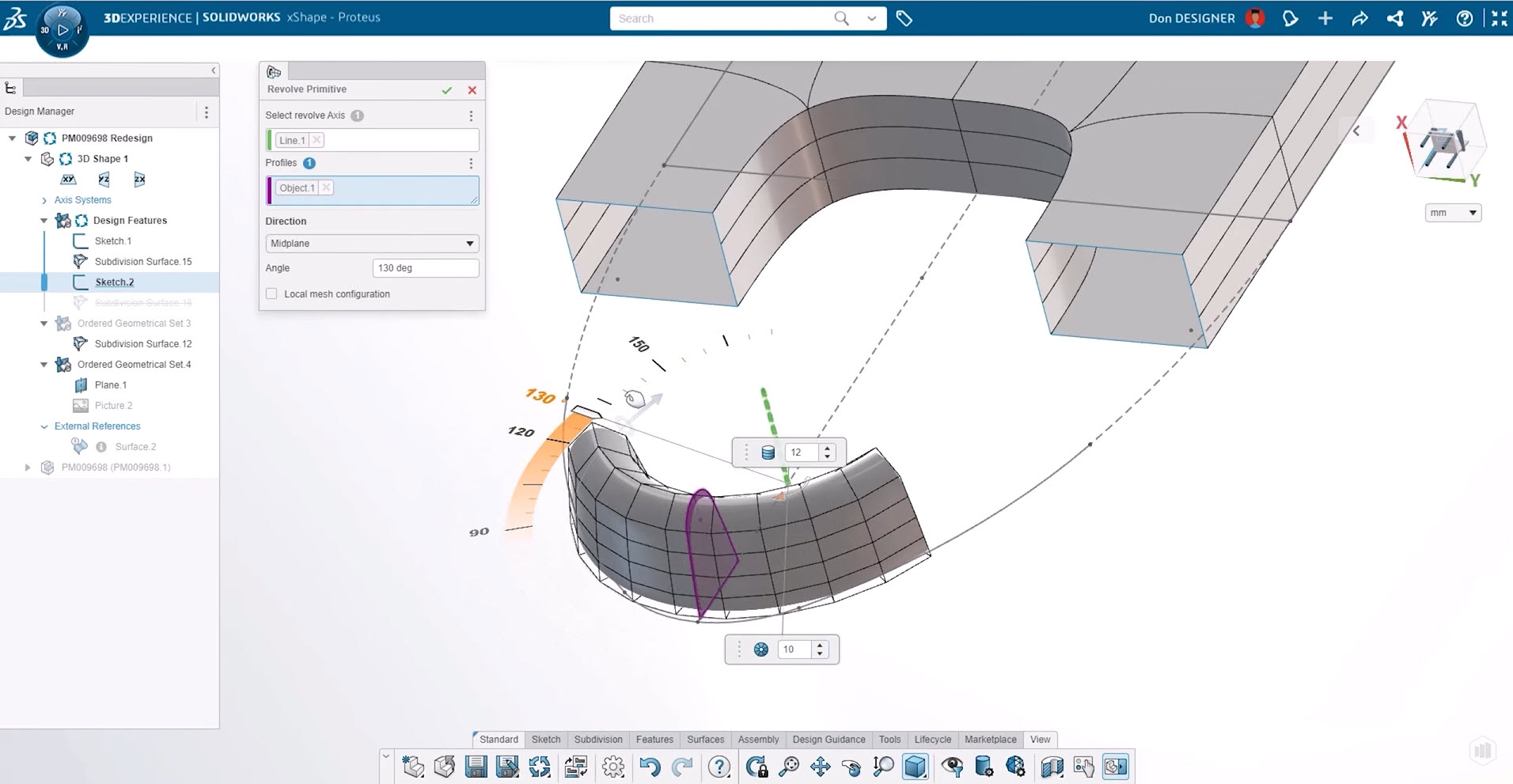 By integrating familiar 2D sketching tools with subdivision modelling, it's easy to generate organic and ergonomic designs that can be imported into SOLIDWORKS parts, drawings, and assemblies.