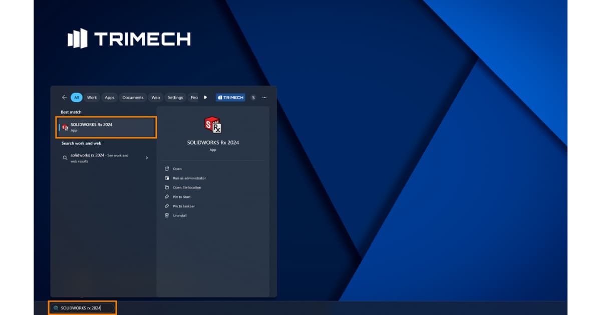 Search for "SOLIDWORKS Rx [Version Year]" in the Windows Start menu.