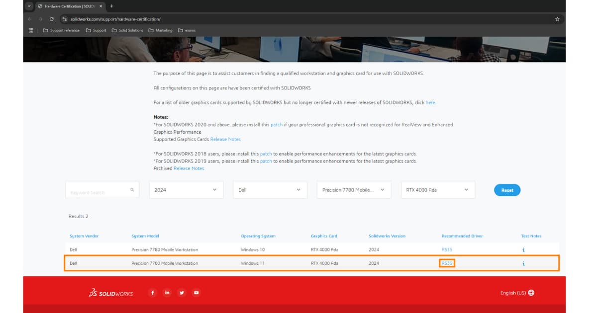 Step 3: Find Certified Drivers for SOLIDWORKS
