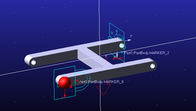 This simple H-frame is grounded so that it can swing via revolute joints - these are simulating hinges to a grounded entity.