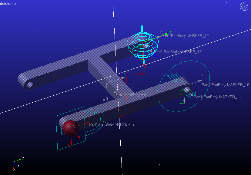 If we run this model, Adams will be able to solve and compensate for the redundant constraints to give us the output we want for the two hinges.