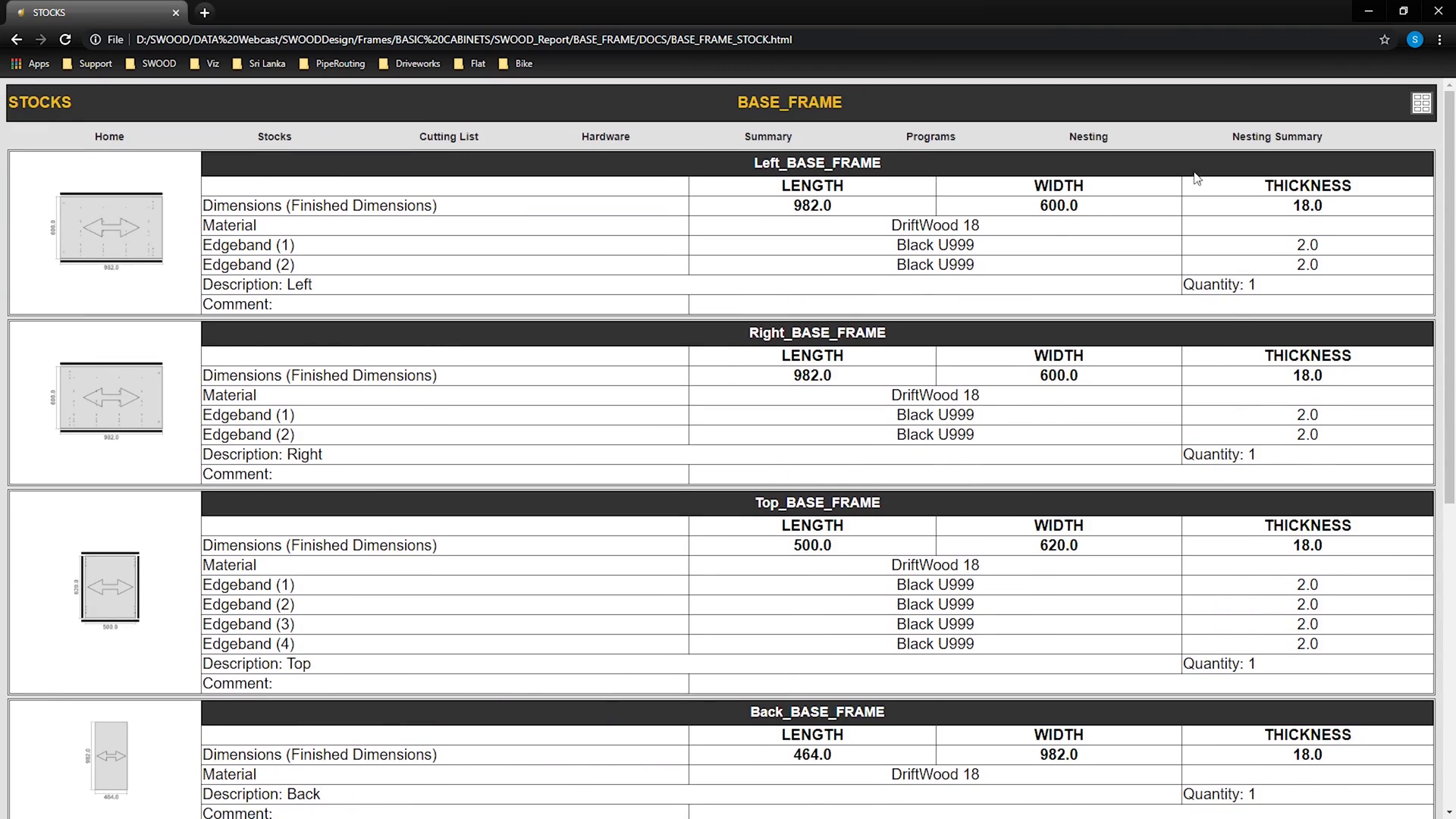 SWOOD Design projects utilise ‘panels’ - these are SOLIDWORKS components with unique custom properties associated, allowing the software to easily read information such as length width and thickness automatically.