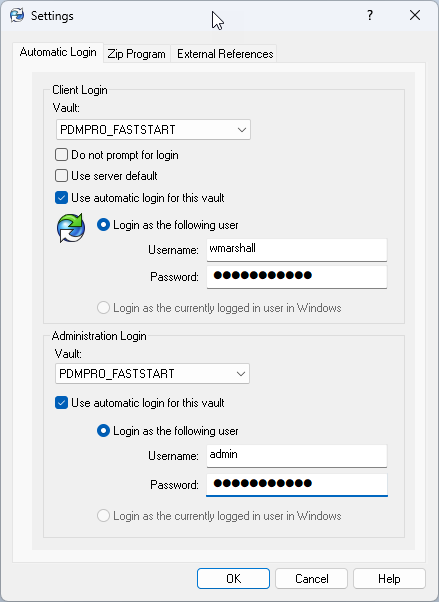 It has long been possible to configure automatic client logins with Windows accounts, pre-populating usernames and passwords for individual users with details specified in the user settings of the PDM Admin Tool.