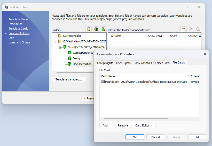 Assign Alternative Folder/File Cards within a PDM Professional Template