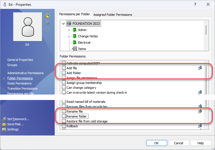 Legacy ‘Add or rename file’ and ‘Add or rename folder’ permissions were split into separate permissions in SOLIDWORKS PDM 2025, so add and rename so should be reviewed in your upgraded vault.