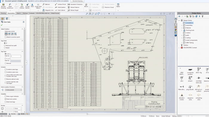 Detailed cut lists are now available for all ‘bill of materials’ types, this provides more flexibility and enables you to easily include weldment data in assembly drawings.