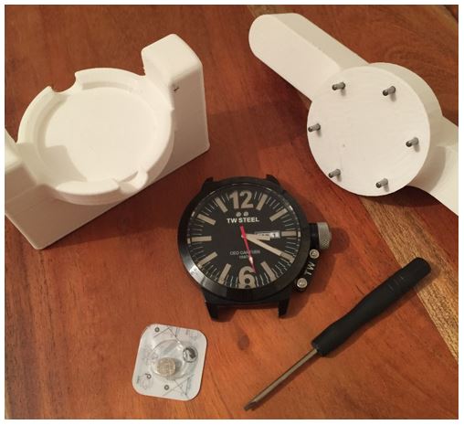I spent some time recently walking around town trying to get a battery replaced in my watch. After the fourth jewellers shop failed to remove the back was resided to sending it back to the manufacturer for repair. That was until I walked past the 3d printer in the office one day and had the idea to design make the tools to do the job myself, so off I went!