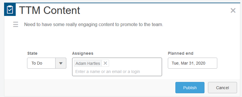 This is a great addition to the entry level Collaborative Business Innovator role. Within your Communities, the WeDo post can act as a simple Task Assignment tool. You can assign the task to a Platform user (up to 10 assignees per WeDo), set its state and planned end date.