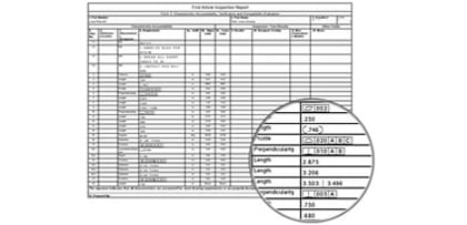 SolidWorks Inspection Professional provides users with multiple methods of inputting measured values such as with digital caliper, manual entry or via importing coordinate measuring machine results.